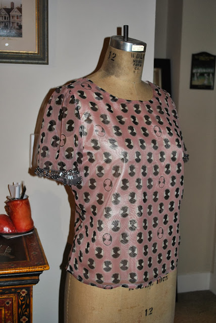 And so I start off 2014 by making three dressy blouses, using very delicate poly chiffon and real chiffon prints, and embellishing them with fancy trims.